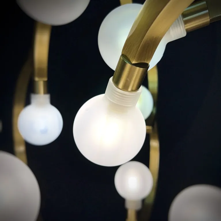 Для подключения люстры вам понадобится 3 лампы с цоколем E27. Светильник хорошо смотрится с декоративными лампами разных форм и размеров. Максимально допустимая мощность на один цоколь для ламп накаливания составляет 60 Вт.