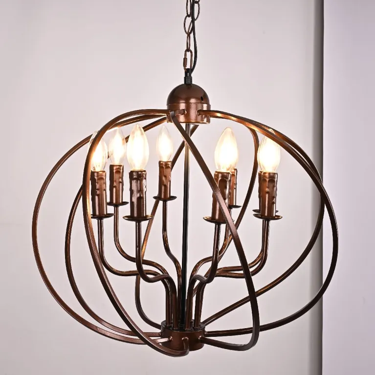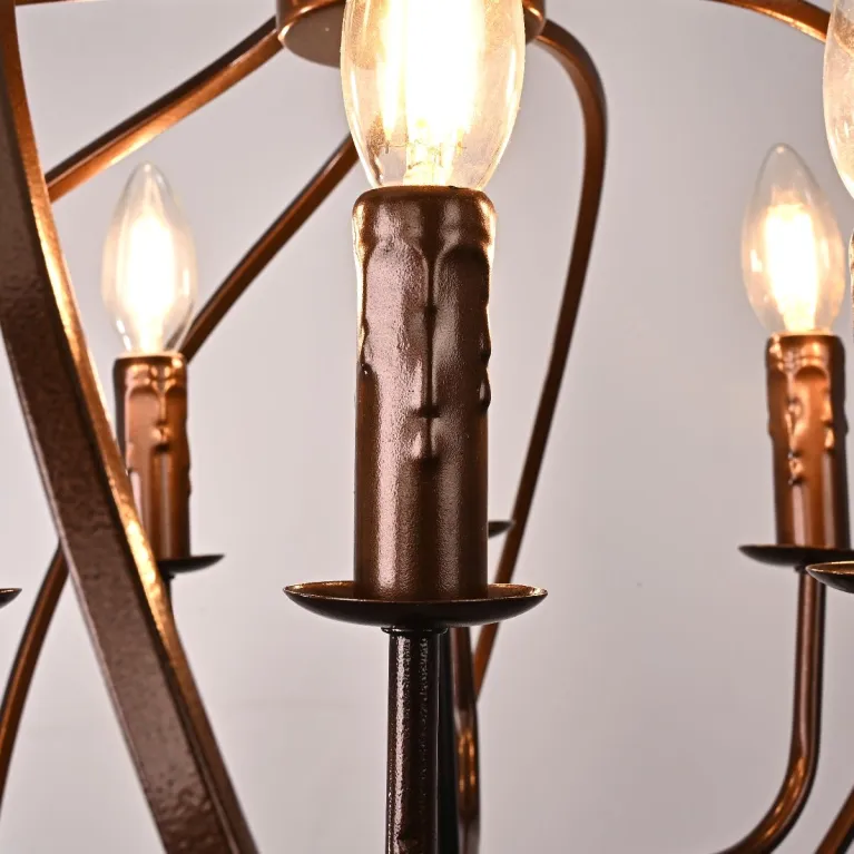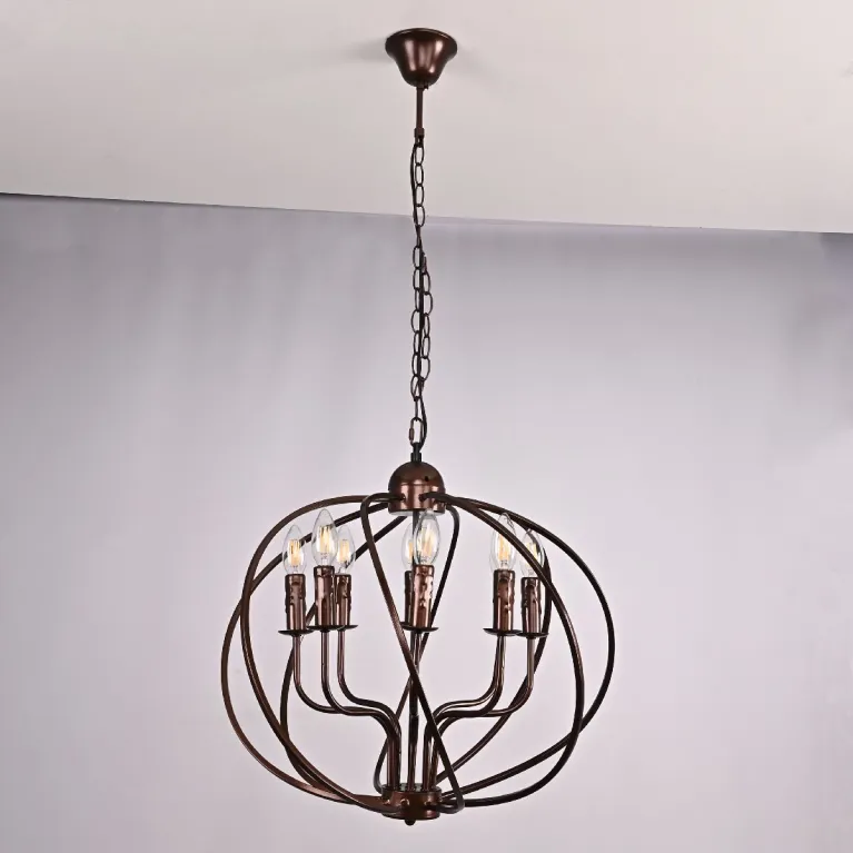 Преобладающий цвет плафонов: Бронза, арматуры: Бронза; материал изготовления арматуры: Металл, размеры, мм: / высота 520 / диаметр 540. Общая мощность – 320 Ватт, а максимальная площадь освещения до 16 м2. Основной тип ламп, предусмотренный производителем: Накаливания с цоколем E14. В зависимости от предпочтений можно использовать лампы теплового, холодного или нейтрального света, за исключением люстр с типом цоколя LED.