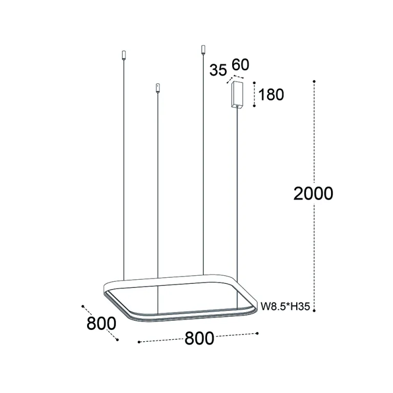 Преобладающий цвет плафонов: Черный, арматуры: Черный; материал изготовления арматуры: Алюминий, размеры, мм: длина 800 / ширина 800 / высота 2000 Общая мощность – 42 Ватт. Основной тип ламп, предусмотренный производителем: Светодиодная с цоколем LED. В зависимости от предпочтений можно использовать лампы теплового, холодного или нейтрального света, за исключением люстр с типом цоколя LED.