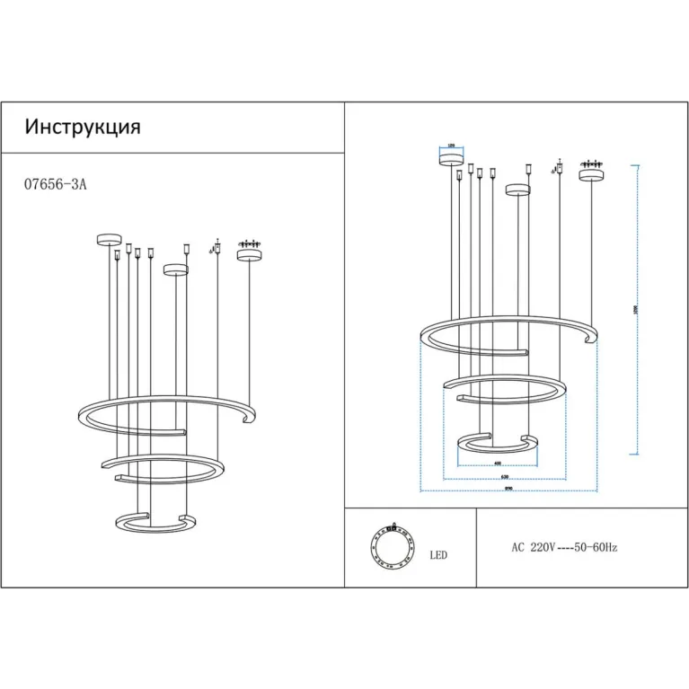 Преобладающий цвет плафонов: Черный, арматуры: Черный; материал изготовления арматуры: Металл, размеры, мм: / высота 1500 / диаметр 890. Общая мощность – 115 Ватт, а максимальная площадь освещения до 50 м2. Основной тип ламп, предусмотренный производителем: Светодиодная с цоколем LED. В зависимости от предпочтений можно использовать лампы теплового, холодного или нейтрального света, за исключением люстр с типом цоколя LED.