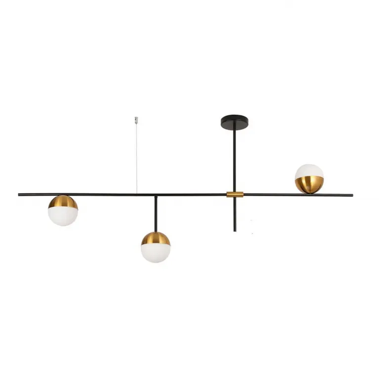 Преобладающий цвет люстры: Бронза, плафонов: Белый, арматуры: Черный; материал изготовления арматуры: Металл, размеры, мм: длина 1400 / ширина 200 / высота 650 Общая мощность – 15 Ватт, а максимальная площадь освещения до 3 м2. Основной тип ламп, предусмотренный производителем: Светодиодная с цоколем G9. В зависимости от предпочтений можно использовать лампы теплового, холодного или нейтрального света, за исключением люстр с типом цоколя LED.