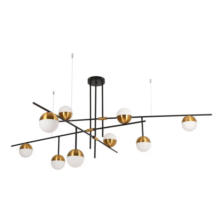 Преобладающий цвет люстры: Бронза, плафонов: Белый, арматуры: Черный; материал изготовления арматуры: Металл, размеры, мм: длина 2000 / ширина 1700 / высота 850 Общая мощность – 45 Ватт, а максимальная площадь освещения до 8 м2. Основной тип ламп, предусмотренный производителем: Светодиодная с цоколем G9. В зависимости от предпочтений можно использовать лампы теплового, холодного или нейтрального света, за исключением люстр с типом цоколя LED.