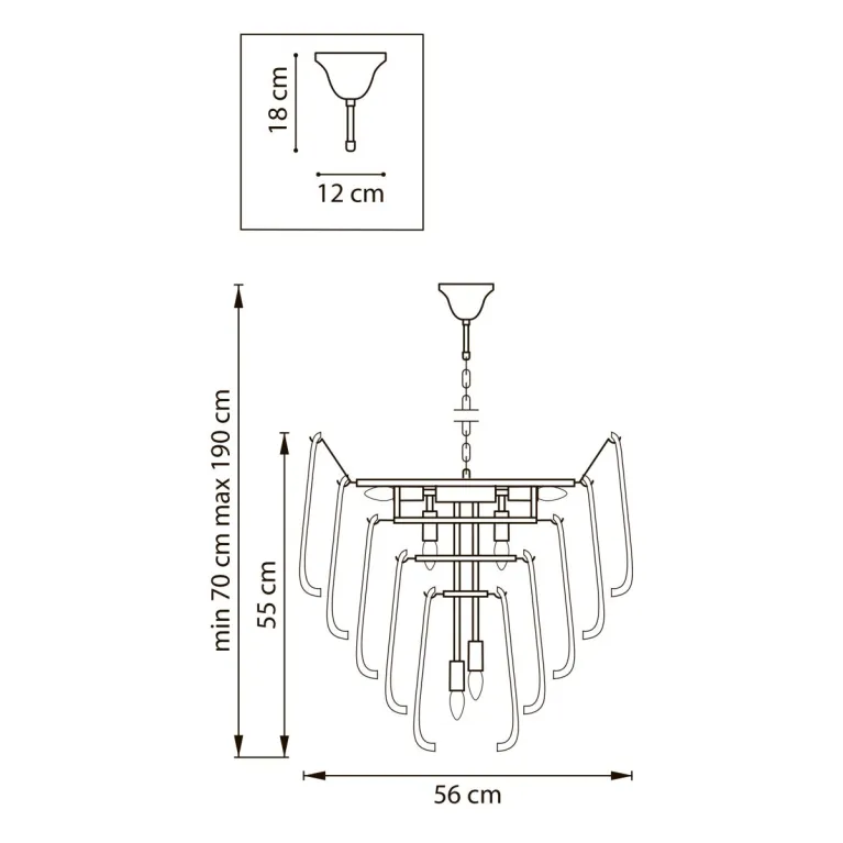 Преобладающий цвет плафонов: Прозрачный, арматуры: Золото; материал изготовления арматуры: Металл, размеры, мм: / высота 1900 / диаметр 560. Общая мощность – 6 Ватт. Основной тип ламп, предусмотренный производителем: Светодиодная с цоколем E14. В зависимости от предпочтений можно использовать лампы теплового, холодного или нейтрального света, за исключением люстр с типом цоколя LED.