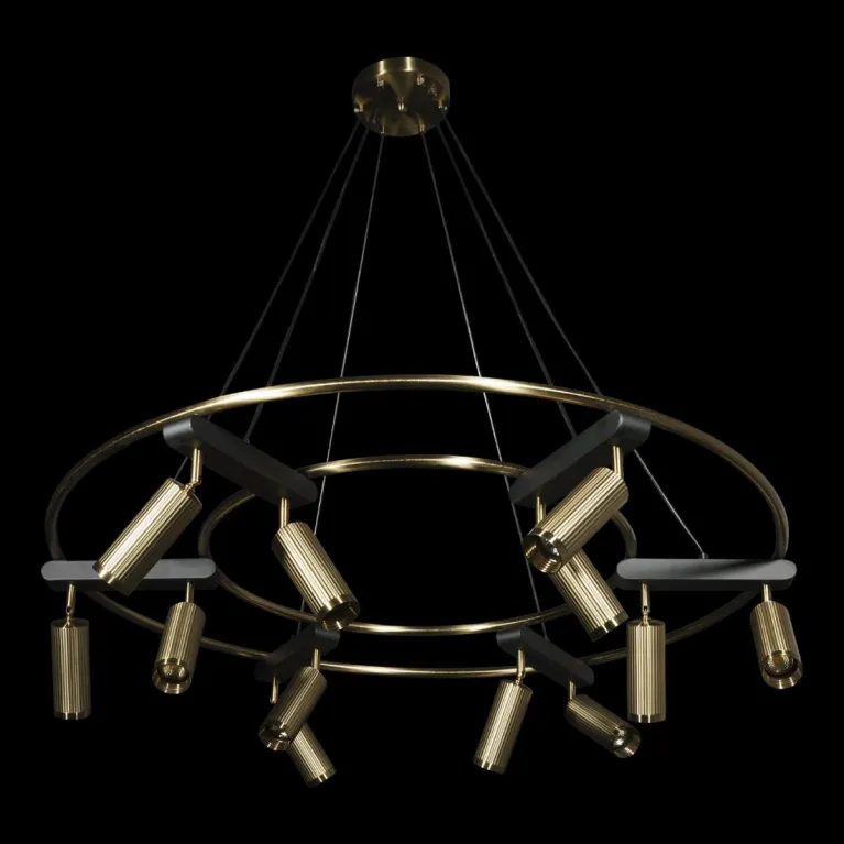 Преобладающий цвет люстры: Золотой, плафонов: Золотой, арматуры: Золотой; материал изготовления арматуры: Металл, размеры, мм: / высота 200 / диаметр 950. Общая мощность – 60 Ватт. Основной тип ламп, предусмотренный производителем: Светодиодная с цоколем GU5.3. В зависимости от предпочтений можно использовать лампы теплового, холодного или нейтрального света, за исключением люстр с типом цоколя LED.