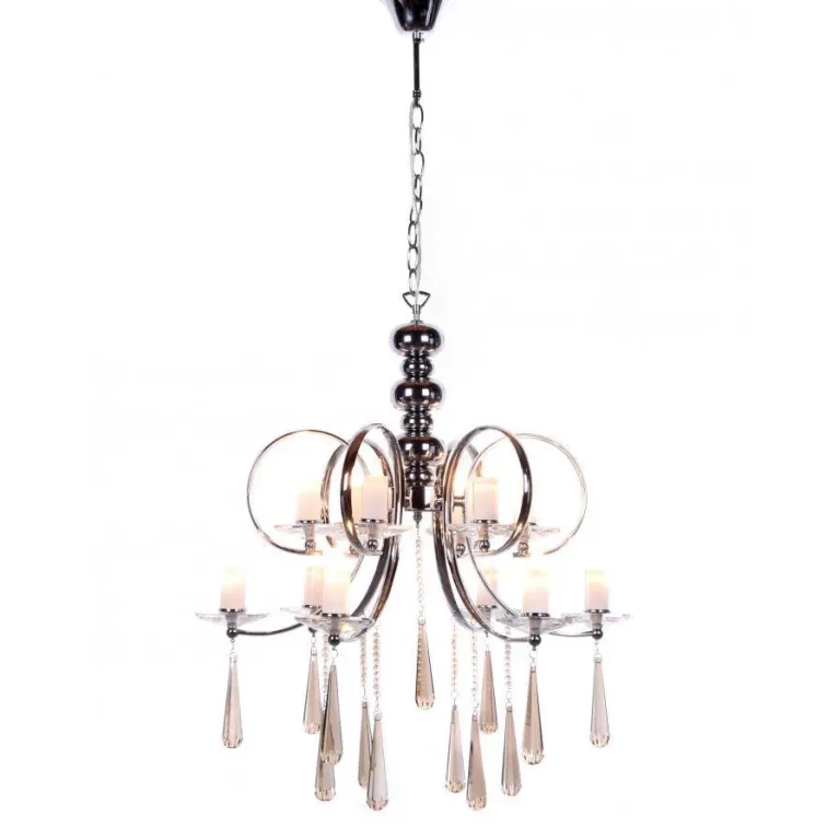 Этот светильник изготовлен из прочного металла с эффектным черным матовым покрытием. Он оснащен двенадцатью источниками света с цоколем E14, что позволяет использовать лампы различного типа и мощности. Суммарная максимальная мощность ламп - 480 Вт, что обеспечивает яркое и равномерное освещение пространства площадью до 40 квадратных метров.