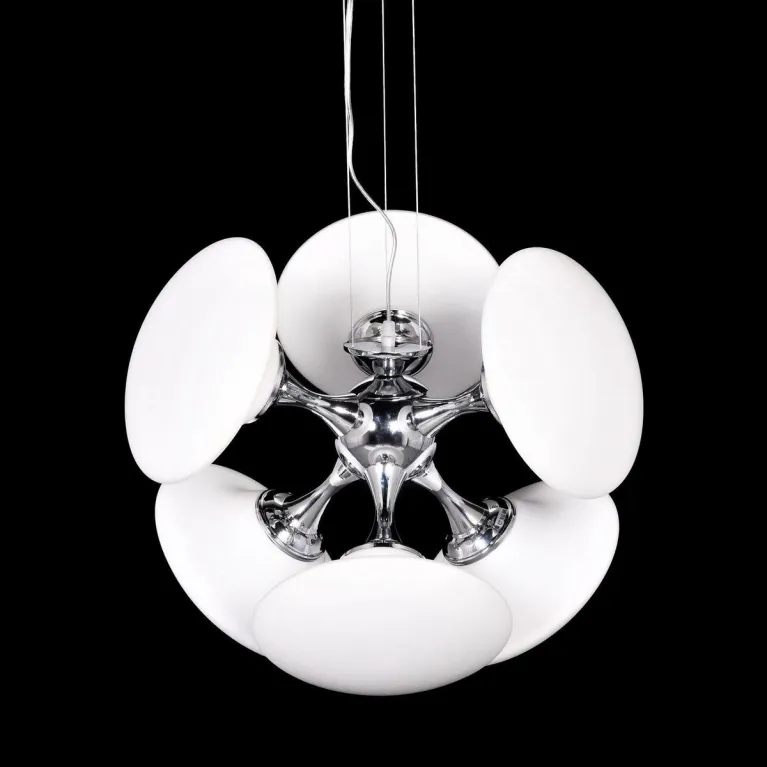 Корпус люстры выполнен из прочного металла, что гарантирует её долговечность и надежность. Плафоны изготовлены из высококачественного стекла, которое прекрасно рассеивает свет и создает уютную атмосферу.