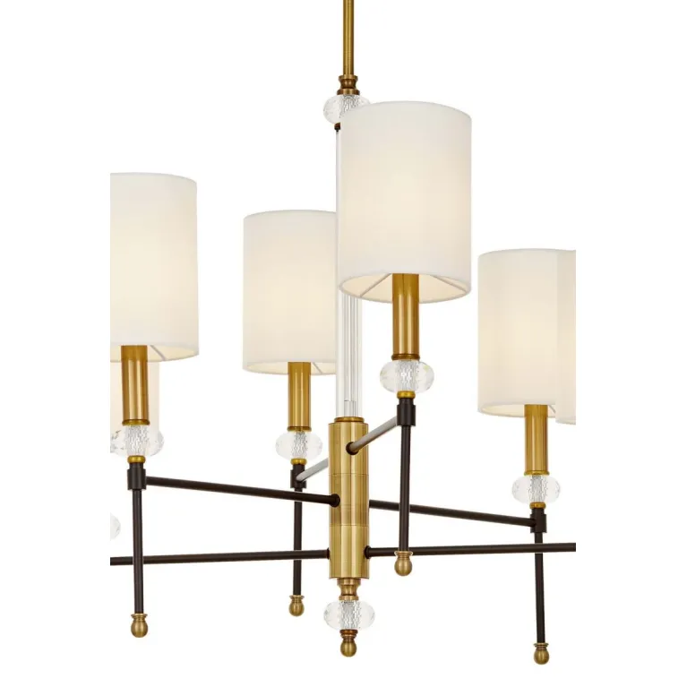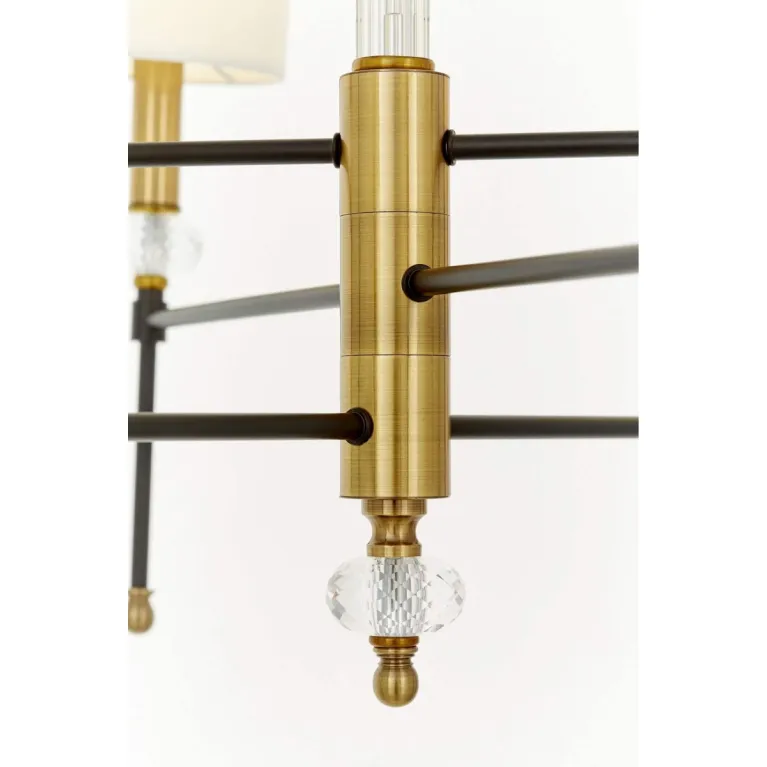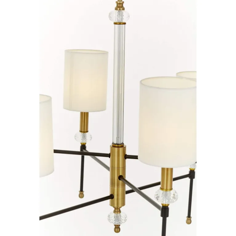 Преобладающий цвет плафонов: Белый, арматуры: Латунь; материал изготовления арматуры: Металл, размеры, мм: / высота 620 / диаметр 650. Общая мощность – 240 Ватт. Основной тип ламп, предусмотренный производителем: Накаливания с цоколем E14. В зависимости от предпочтений можно использовать лампы теплового, холодного или нейтрального света, за исключением люстр с типом цоколя LED.