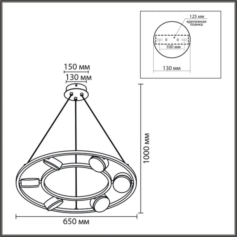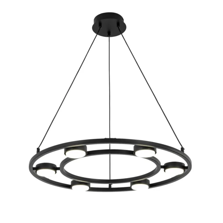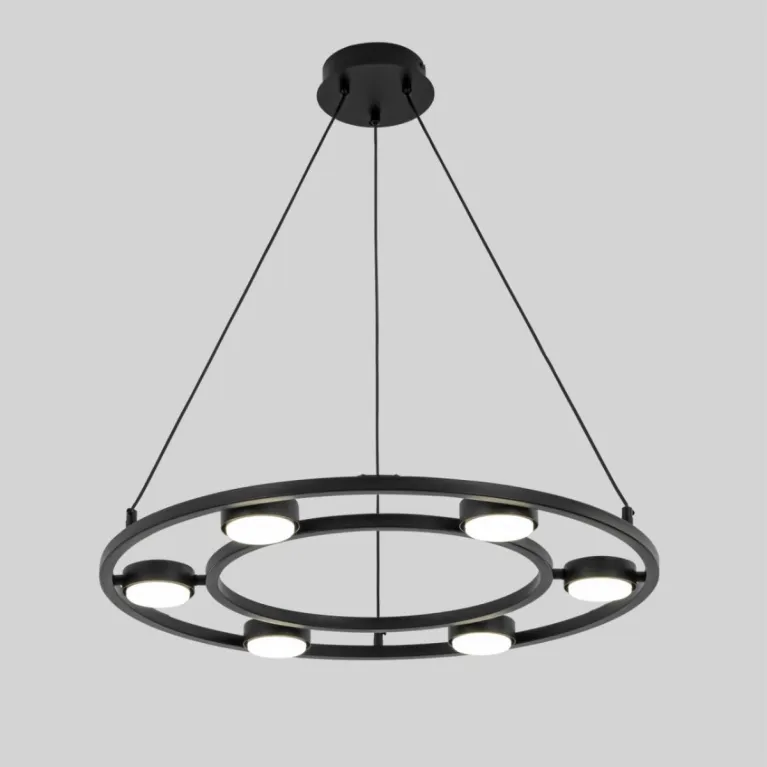 Преобладающий цвет плафонов: Черный, арматуры: Черный; материал изготовления арматуры: Металл, размеры, мм: / высота 1000 / диаметр 650. Общая мощность – 42 Ватт. Основной тип ламп, предусмотренный производителем: Светодиодная с цоколем GX53. В зависимости от предпочтений можно использовать лампы теплового, холодного или нейтрального света, за исключением люстр с типом цоколя LED.