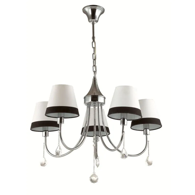 Преобладающий цвет люстры: Белый, плафонов: Белый, арматуры: Хром; материал изготовления арматуры: Металл, размеры, мм: / высота 540 / диаметр 640. Общая мощность – 200 Ватт, а максимальная площадь освещения до 11,1 м2. Основной тип ламп, предусмотренный производителем: Накаливания с цоколем E14. В зависимости от предпочтений можно использовать лампы теплового, холодного или нейтрального света, за исключением люстр с типом цоколя LED.