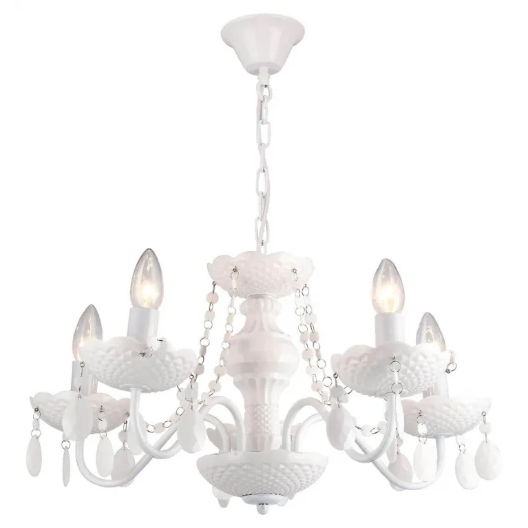 Преобладающий цвет люстры: Белый, арматуры: Белый; материал изготовления арматуры: Металл, размеры, мм: / высота 300 / диаметр 540. Общая мощность – 35 Ватт. Основной тип ламп, предусмотренный производителем: Светодиодная с цоколем E14. В зависимости от предпочтений можно использовать лампы теплового, холодного или нейтрального света, за исключением люстр с типом цоколя LED.