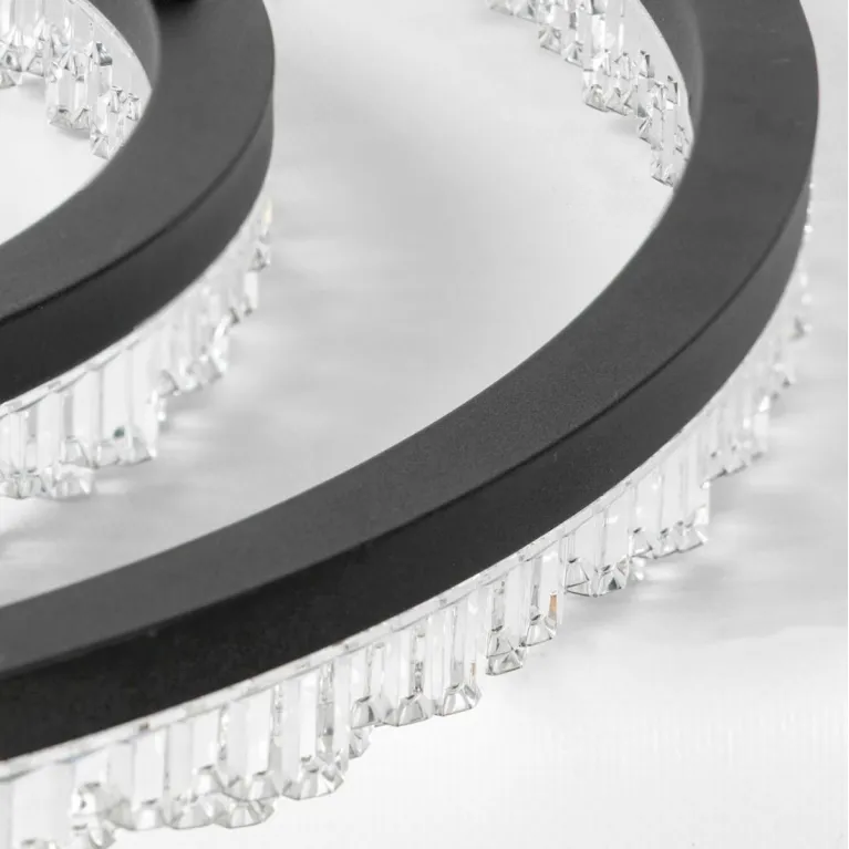 Преобладающий цвет плафонов: Прозрачный, арматуры: Черный; материал изготовления арматуры: Металл, размеры, мм: / высота 1500 / диаметр 600. Общая мощность – 50 Ватт. Основной тип ламп, предусмотренный производителем: Светодиодная с цоколем LED. В зависимости от предпочтений можно использовать лампы теплового, холодного или нейтрального света, за исключением люстр с типом цоколя LED.