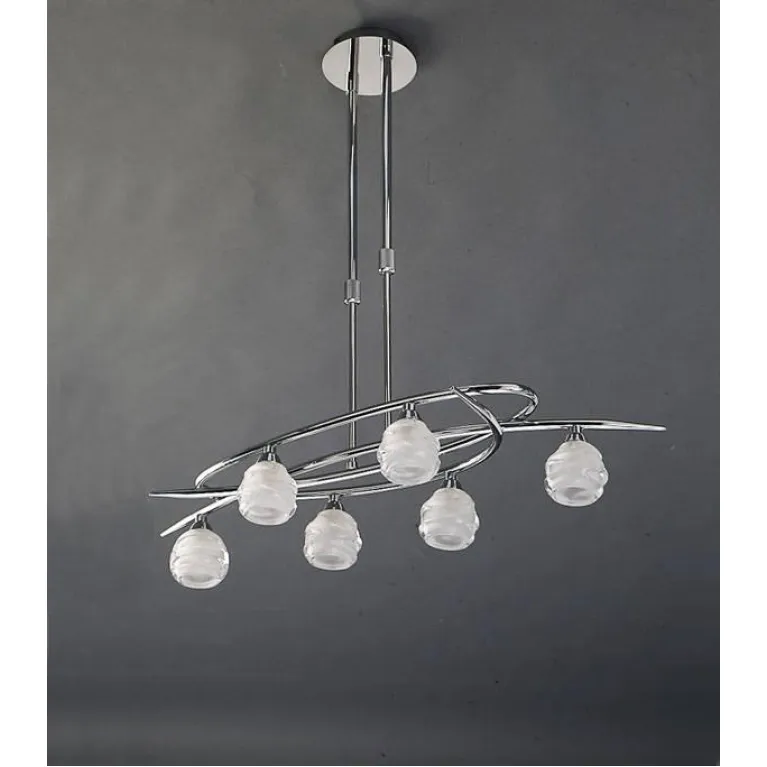 Подвесная люстра Mantra Loop Chrome 1801 - это элегантное и стильное решение для освещения просторных гостиной, столовой или спальни. Она станет ярким акцентом в интерьере и придаст ему современный вид. Люстра выполнена в хромированном корпусе и имеет утонченные плафоны из белого матового стекла, что обеспечивает мягкое и равномерное рассеивание света.