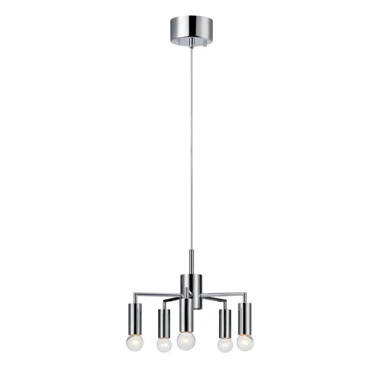 Преобладающий цвет люстры: Хром, арматуры: Хром; материал изготовления арматуры: Металл, размеры, мм: / высота 240 / диаметр 330. Общая мощность – 200 Ватт, а максимальная площадь освещения до 10 м2. Основной тип ламп, предусмотренный производителем: Накаливания с цоколем E14. В зависимости от предпочтений можно использовать лампы теплового, холодного или нейтрального света, за исключением люстр с типом цоколя LED.