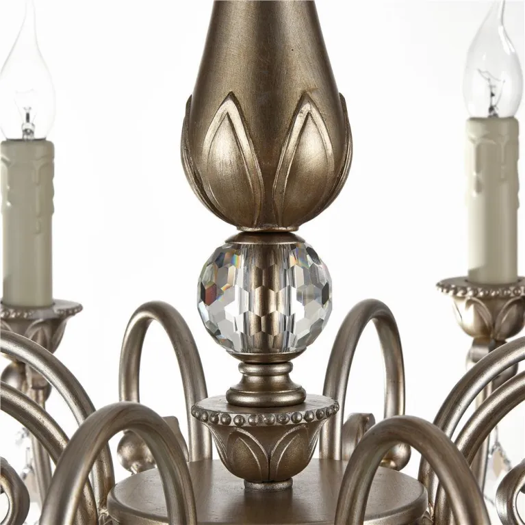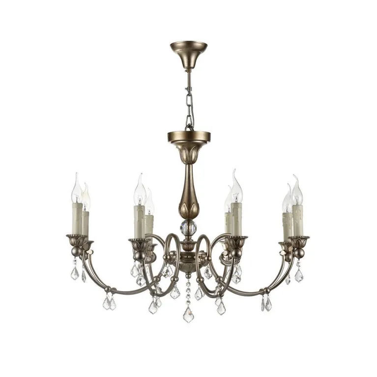 Преобладающий цвет люстры: Золотой, арматуры: Золото; материал изготовления арматуры: Металл, размеры, мм: / высота 560 / диаметр 750. Общая мощность – 480 Ватт, а максимальная площадь освещения до 26,7 м2. Основной тип ламп, предусмотренный производителем: Накаливания с цоколем E14. В зависимости от предпочтений можно использовать лампы теплового, холодного или нейтрального света, за исключением люстр с типом цоколя LED.