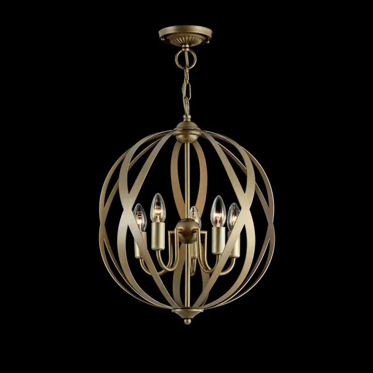 Преобладающий цвет люстры: Золотой, плафонов: Золото, арматуры: Золото; материал изготовления арматуры: Металл, размеры, мм: / высота 537 / диаметр 422. Общая мощность – 200 Ватт, а максимальная площадь освещения до 11,1 м2. Основной тип ламп, предусмотренный производителем: Накаливания с цоколем E14. В зависимости от предпочтений можно использовать лампы теплового, холодного или нейтрального света, за исключением люстр с типом цоколя LED.