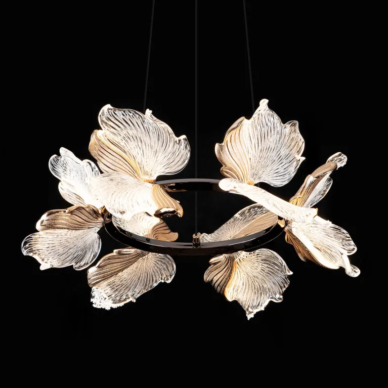 Преобладающий цвет плафонов: Прозрачный, арматуры: Черный; материал изготовления арматуры: Металл, размеры, мм: / высота 1500 / диаметр 500. Общая мощность – 48 Ватт. Основной тип ламп, предусмотренный производителем: Светодиодная с цоколем LED. В зависимости от предпочтений можно использовать лампы теплового, холодного или нейтрального света, за исключением люстр с типом цоколя LED.