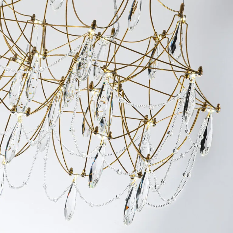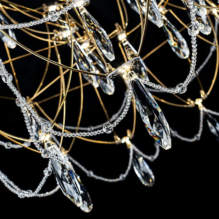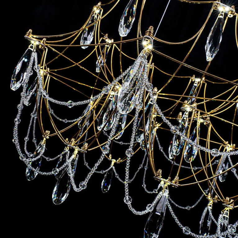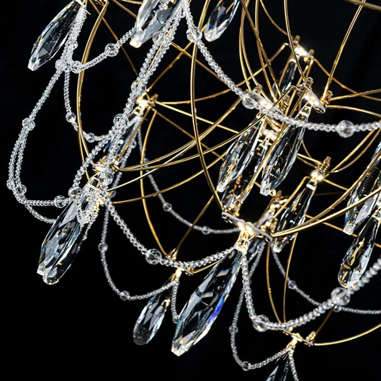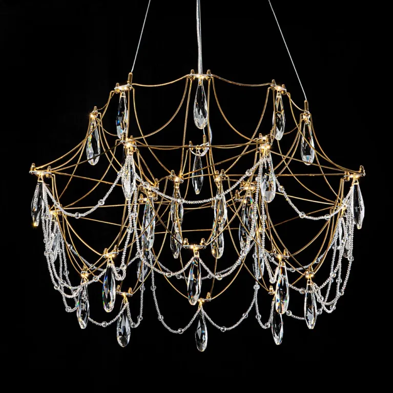 Преобладающий цвет плафонов: Прозрачный, арматуры: Латунь; материал изготовления арматуры: Металл, размеры, мм: / высота 2000 / диаметр 600. Общая мощность – 32 Ватт, а максимальная площадь освещения до 14 м2. Основной тип ламп, предусмотренный производителем: Светодиодная с цоколем LED. В зависимости от предпочтений можно использовать лампы теплового, холодного или нейтрального света, за исключением люстр с типом цоколя LED.