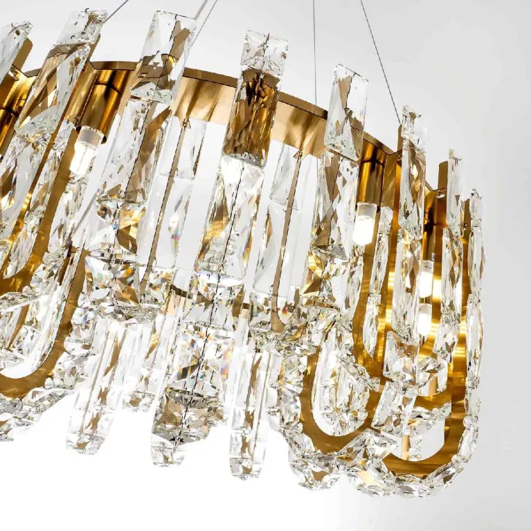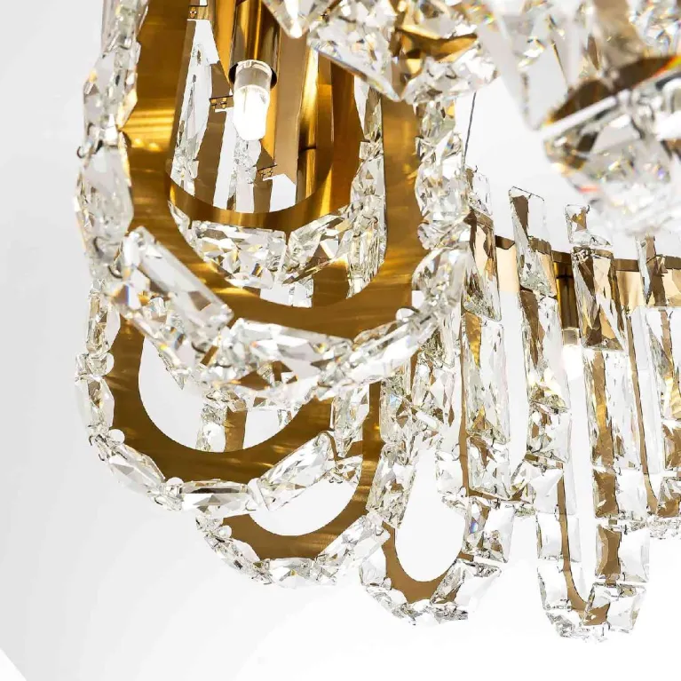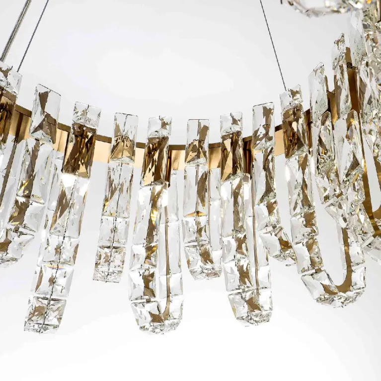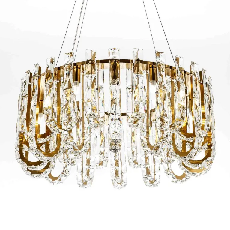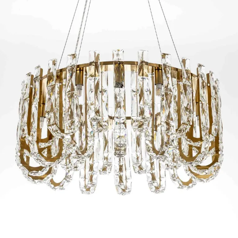 Преобладающий цвет плафонов: Прозрачный, арматуры: Латунь; материал изготовления арматуры: Металл, размеры, мм: / высота 1400 / диаметр 600. Общая мощность – Ватт, а максимальная площадь освещения до 17 м2. Основной тип ламп, предусмотренный производителем: с цоколем G9. В зависимости от предпочтений можно использовать лампы теплового, холодного или нейтрального света, за исключением люстр с типом цоколя LED.