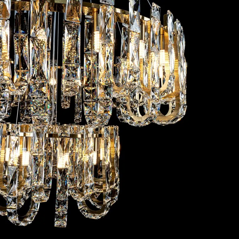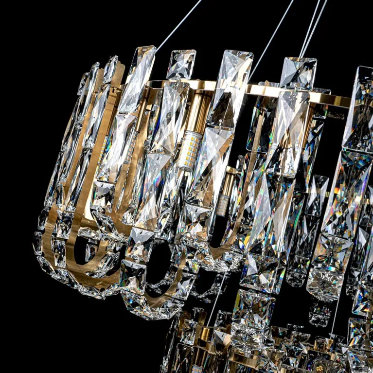 Преобладающий цвет плафонов: Прозрачный, арматуры: Латунь; материал изготовления арматуры: Металл, размеры, мм: / высота 1200 / диаметр 800. Общая мощность – Ватт, а максимальная площадь освещения до 22 м2. Основной тип ламп, предусмотренный производителем: с цоколем G9. В зависимости от предпочтений можно использовать лампы теплового, холодного или нейтрального света, за исключением люстр с типом цоколя LED.