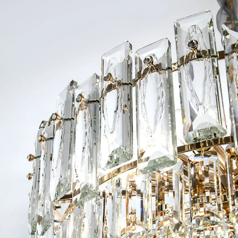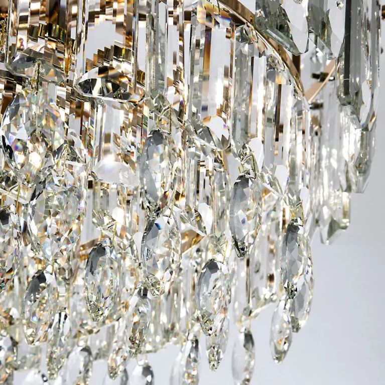 Преобладающий цвет плафонов: Прозрачный, арматуры: Золото; материал изготовления арматуры: Металл, размеры, мм: / высота 1000 / диаметр 600. Общая мощность – 480 Ватт, а максимальная площадь освещения до 20 м2. Основной тип ламп, предусмотренный производителем: Накаливания с цоколем E14. В зависимости от предпочтений можно использовать лампы теплового, холодного или нейтрального света, за исключением люстр с типом цоколя LED.