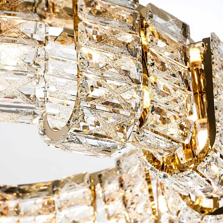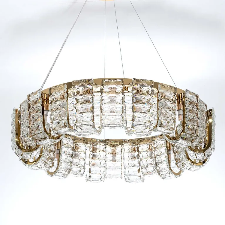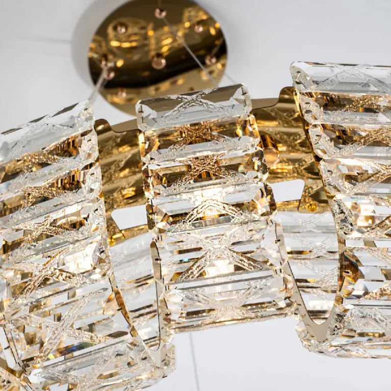Преобладающий цвет плафонов: Прозрачный, арматуры: Золото; материал изготовления арматуры: Металл, размеры, мм: / высота 1200 / диаметр 800. Общая мощность – Ватт, а максимальная площадь освещения до 20 м2. Основной тип ламп, предусмотренный производителем: с цоколем G9. В зависимости от предпочтений можно использовать лампы теплового, холодного или нейтрального света, за исключением люстр с типом цоколя LED.