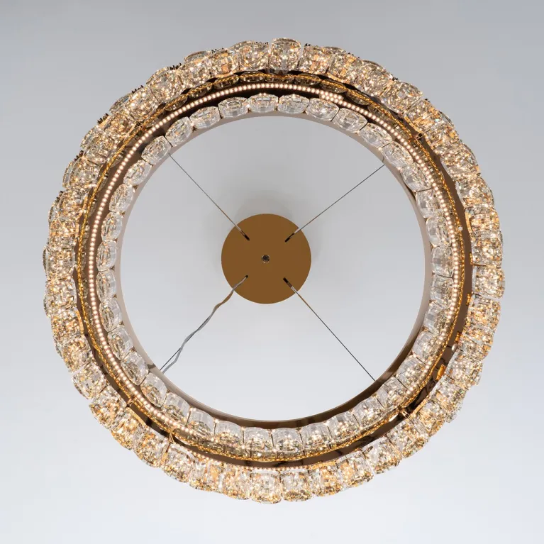 Преобладающий цвет плафонов: Прозрачный, арматуры: Золото; материал изготовления арматуры: Металл, размеры, мм: / высота 1600 / диаметр 600. Общая мощность – 95 Ватт. Основной тип ламп, предусмотренный производителем: Светодиодная с цоколем LED. В зависимости от предпочтений можно использовать лампы теплового, холодного или нейтрального света, за исключением люстр с типом цоколя LED.