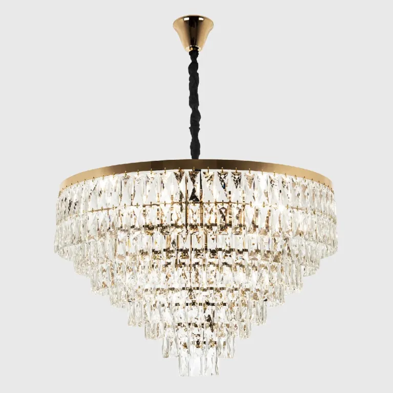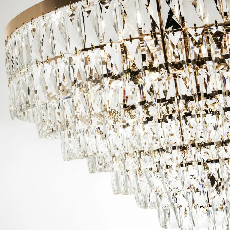 Преобладающий цвет плафонов: Прозрачный, арматуры: Золото; материал изготовления арматуры: Металл, размеры, мм: / высота 1300 / диаметр 780. Общая мощность – 720 Ватт, а максимальная площадь освещения до 25 м2. Основной тип ламп, предусмотренный производителем: Накаливания с цоколем E14. В зависимости от предпочтений можно использовать лампы теплового, холодного или нейтрального света, за исключением люстр с типом цоколя LED.