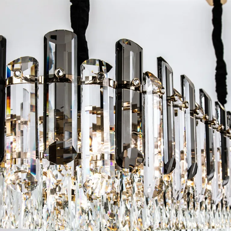 Преобладающий цвет плафонов: Дымчатый, арматуры: Золото; материал изготовления арматуры: Металл, размеры, мм: длина 1200 / ширина 300 / высота 1050 Общая мощность – 480 Ватт, а максимальная площадь освещения до 22 м2. Основной тип ламп, предусмотренный производителем: Накаливания с цоколем E14. В зависимости от предпочтений можно использовать лампы теплового, холодного или нейтрального света, за исключением люстр с типом цоколя LED.