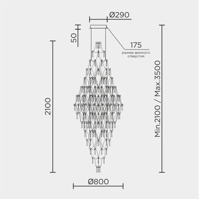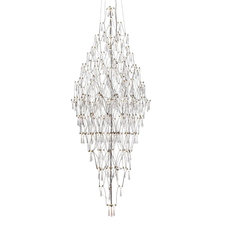 Преобладающий цвет плафонов: Прозрачный, арматуры: Хром; материал изготовления арматуры: Металл, размеры, мм: / высота 2100 / диаметр 800. Общая мощность – 107 Ватт, а максимальная площадь освещения до 20 м2. Основной тип ламп, предусмотренный производителем: Светодиодная с цоколем LED. В зависимости от предпочтений можно использовать лампы теплового, холодного или нейтрального света, за исключением люстр с типом цоколя LED.