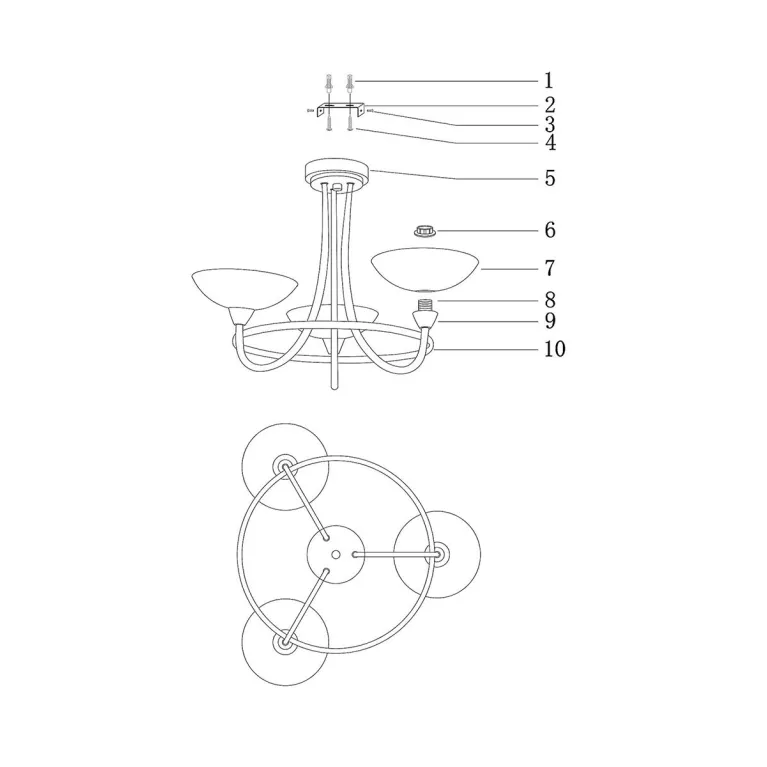 Люстра оснащена тремя источниками света с цоколем E14, что позволяет использовать лампы накаливания, энергосберегающие или светодиодные. Максимальная мощность каждой лампы — 40 Вт, что обеспечивает достаточное освещение пространства площадью до 18 кв.м. Каркас люстры выполнен из прочного металла с черным матовым покрытием, придающим изделию современный и стильный вид.