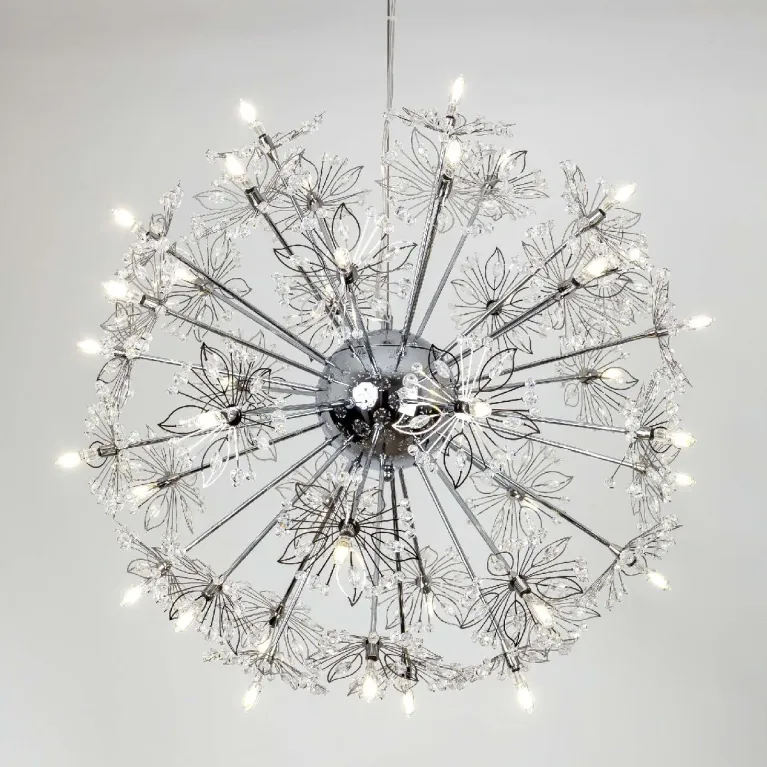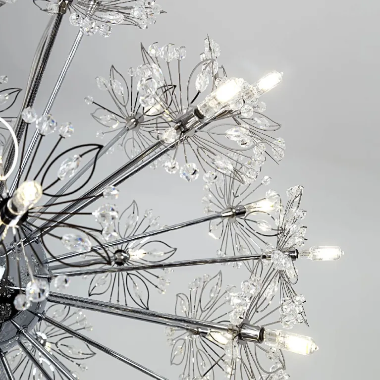 Преобладающий цвет плафонов: Прозрачный, арматуры: Хром; материал изготовления арматуры: Металл, размеры, мм: / высота 1500 / диаметр 600. Общая мощность – 800 Ватт, а максимальная площадь освещения до 20 м2. Основной тип ламп, предусмотренный производителем: Светодиодная с цоколем G4. В зависимости от предпочтений можно использовать лампы теплового, холодного или нейтрального света, за исключением люстр с типом цоколя LED.