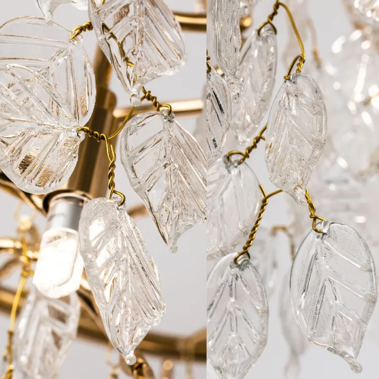 Преобладающий цвет плафонов: Прозрачный, арматуры: Золото; материал изготовления арматуры: Металл, размеры, мм: / высота 1400 / диаметр 800. Общая мощность – Ватт. Основной тип ламп, предусмотренный производителем: с цоколем G9. В зависимости от предпочтений можно использовать лампы теплового, холодного или нейтрального света, за исключением люстр с типом цоколя LED.