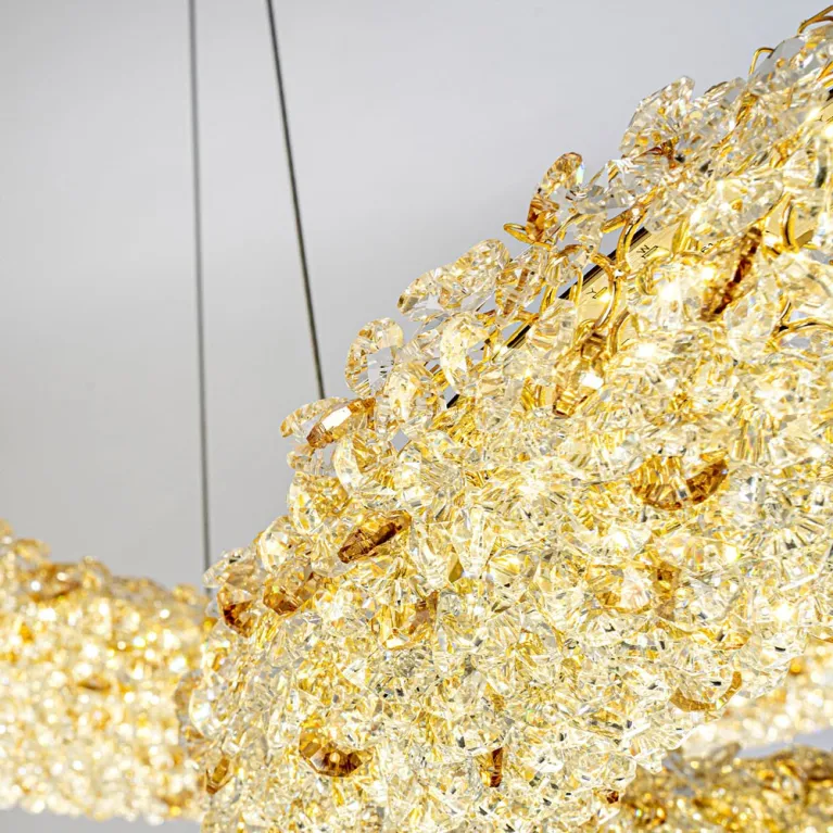 Преобладающий цвет плафонов: Прозрачный, арматуры: Золото; материал изготовления арматуры: Металл, размеры, мм: / высота 1300 / диаметр 800. Общая мощность – 230 Ватт, а максимальная площадь освещения до 17 м2. Основной тип ламп, предусмотренный производителем: Светодиодная с цоколем LED. В зависимости от предпочтений можно использовать лампы теплового, холодного или нейтрального света, за исключением люстр с типом цоколя LED.