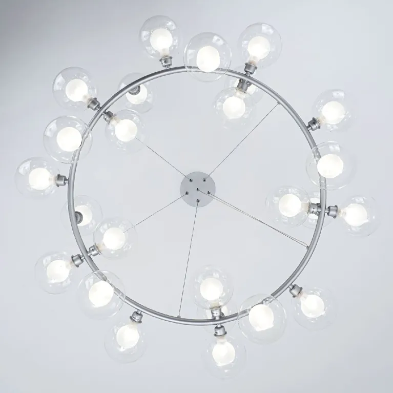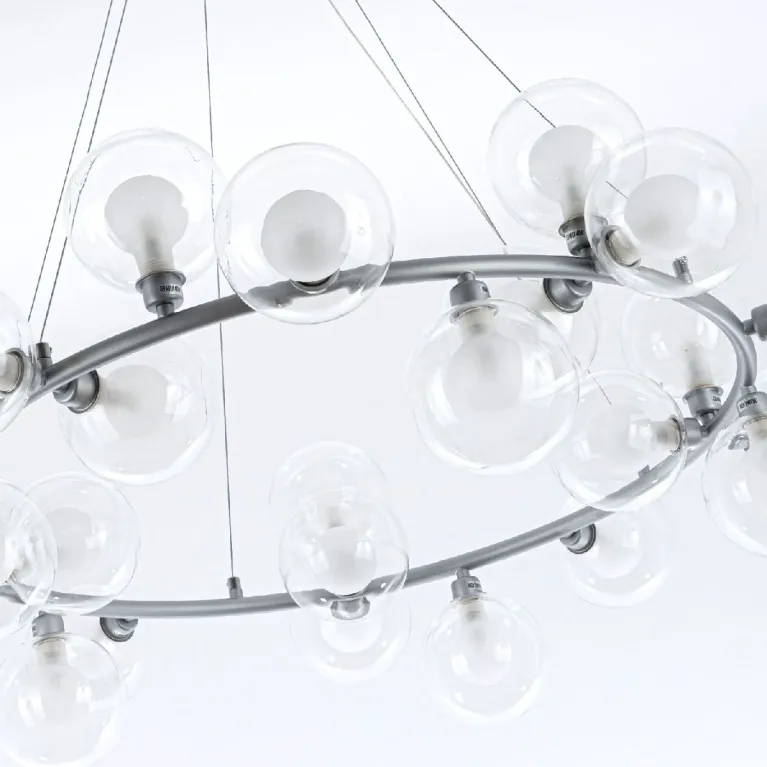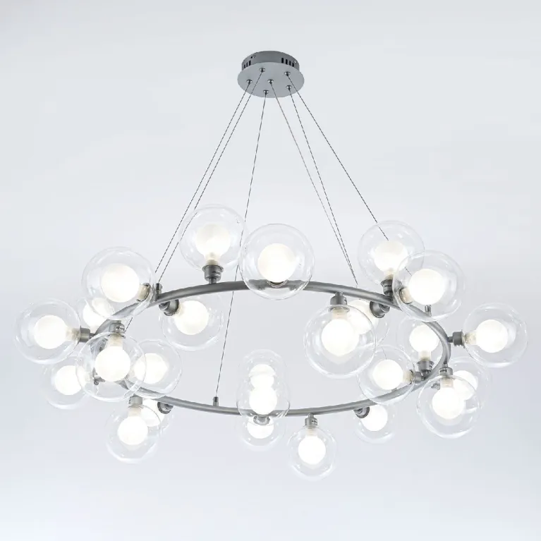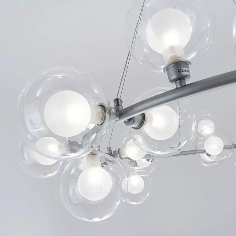 Преобладающий цвет плафонов: Прозрачный, арматуры: Серебро; материал изготовления арматуры: Металл, размеры, мм: / высота 1200 / диаметр 960. Общая мощность – Ватт, а максимальная площадь освещения до 25 м2. Основной тип ламп, предусмотренный производителем: с цоколем G9. В зависимости от предпочтений можно использовать лампы теплового, холодного или нейтрального света, за исключением люстр с типом цоколя LED.