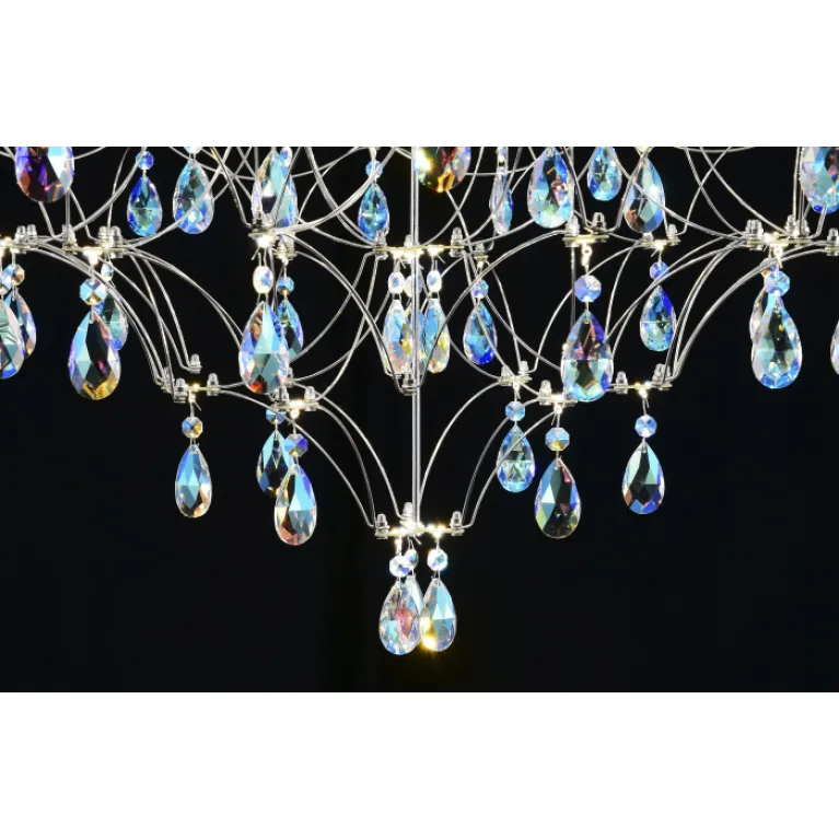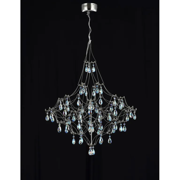 Преобладающий цвет арматуры: Никель; материал изготовления арматуры: Металл, размеры, мм: длина 780 / ширина 780 / высота 2450 Общая мощность – 33 Ватт, а максимальная площадь освещения до 12 м2. Основной тип ламп, предусмотренный производителем: Светодиодная с цоколем LED. В зависимости от предпочтений можно использовать лампы теплового, холодного или нейтрального света, за исключением люстр с типом цоколя LED.
