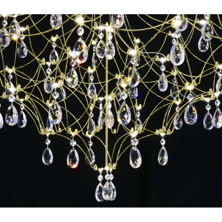 Преобладающий цвет арматуры: Золото; материал изготовления арматуры: Металл, размеры, мм: длина 780 / ширина 780 / высота 2450 Общая мощность – 33 Ватт, а максимальная площадь освещения до 12 м2. Основной тип ламп, предусмотренный производителем: Светодиодная с цоколем LED. В зависимости от предпочтений можно использовать лампы теплового, холодного или нейтрального света, за исключением люстр с типом цоколя LED.
