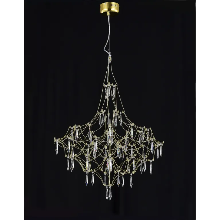 Преобладающий цвет арматуры: Золото; материал изготовления арматуры: Металл, размеры, мм: длина 780 / ширина 780 / высота 2450 Общая мощность – 33 Ватт, а максимальная площадь освещения до 12 м2. Основной тип ламп, предусмотренный производителем: Светодиодная с цоколем LED. В зависимости от предпочтений можно использовать лампы теплового, холодного или нейтрального света, за исключением люстр с типом цоколя LED.