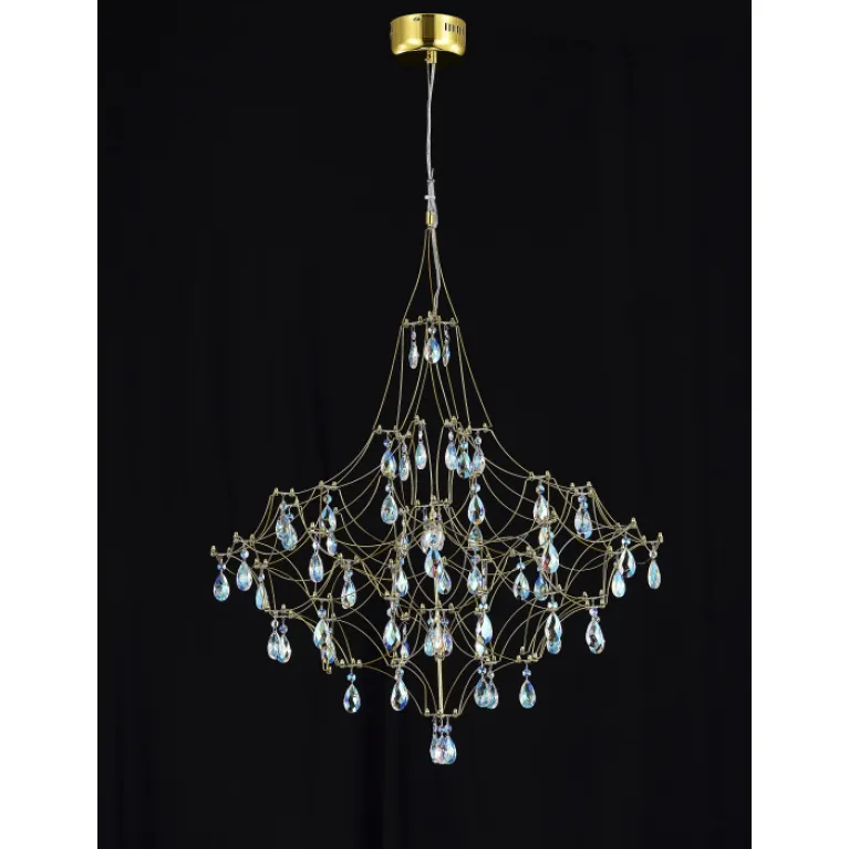 Преобладающий цвет арматуры: Латунь; материал изготовления арматуры: Металл, размеры, мм: длина 780 / ширина 780 / высота 2450 Общая мощность – 33 Ватт, а максимальная площадь освещения до 12 м2. Основной тип ламп, предусмотренный производителем: Светодиодная с цоколем LED. В зависимости от предпочтений можно использовать лампы теплового, холодного или нейтрального света, за исключением люстр с типом цоколя LED.