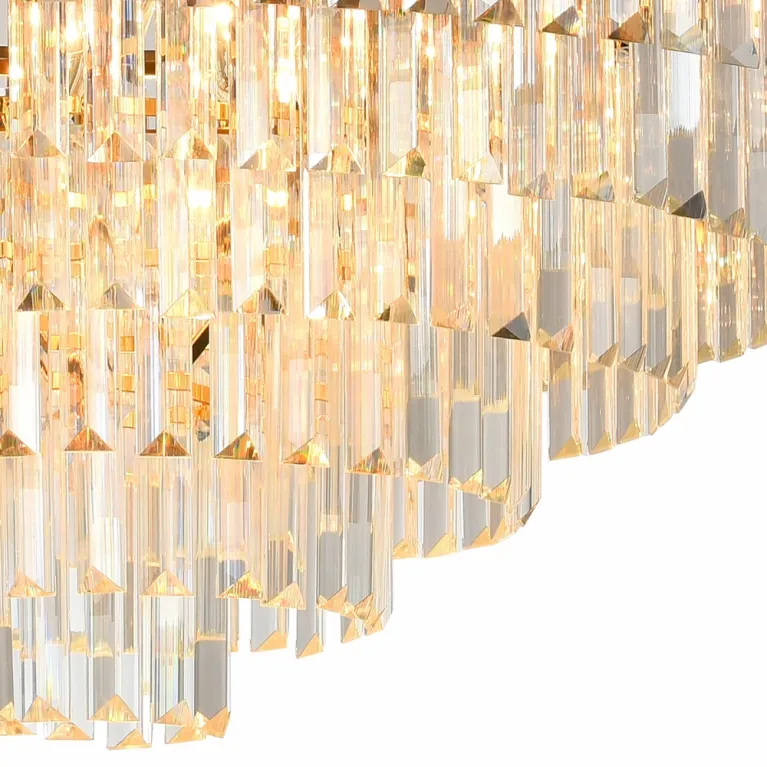 Преобладающий цвет арматуры: Золото; материал изготовления арматуры: Металл, размеры, мм: / высота 490 / диаметр 800. Общая мощность – 560 Ватт, а максимальная площадь освещения до 28 м2. Основной тип ламп, предусмотренный производителем: Накаливания с цоколем E14. В зависимости от предпочтений можно использовать лампы теплового, холодного или нейтрального света, за исключением люстр с типом цоколя LED.