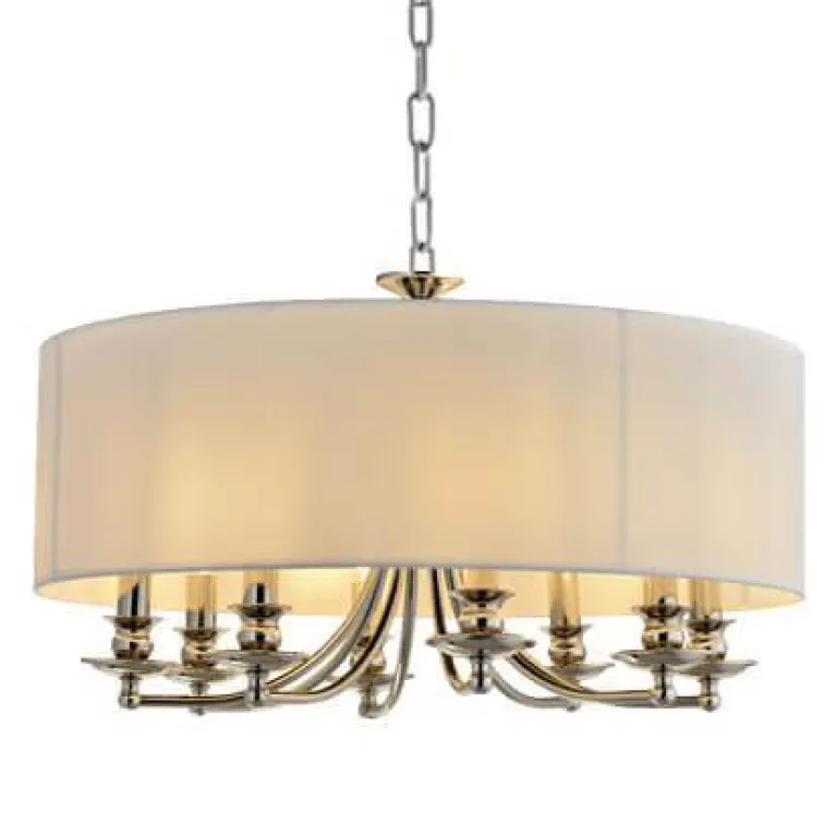 Преобладающий цвет люстры: Бежевый, плафонов: Бежевый, арматуры: Никель; материал изготовления арматуры: Металл, размеры, мм: / высота 400 / диаметр 700. Общая мощность – 320 Ватт. Основной тип ламп, предусмотренный производителем: Накаливания с цоколем E14. В зависимости от предпочтений можно использовать лампы теплового, холодного или нейтрального света, за исключением люстр с типом цоколя LED.