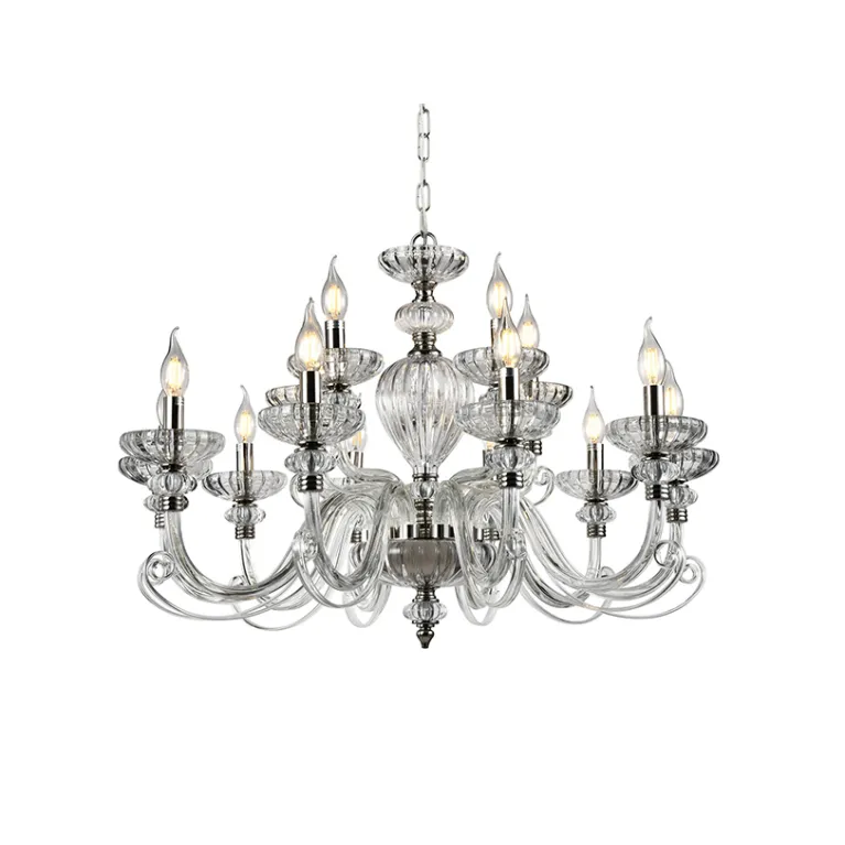 Для работы люстры понадобится 15 ламп с цоколем E14 мощностью до 60 Вт каждая. Благодаря такому количеству ламп и их расположению, светильник создаёт яркое и равномерное освещение, подходящее как для общего, так и для акцентного света.