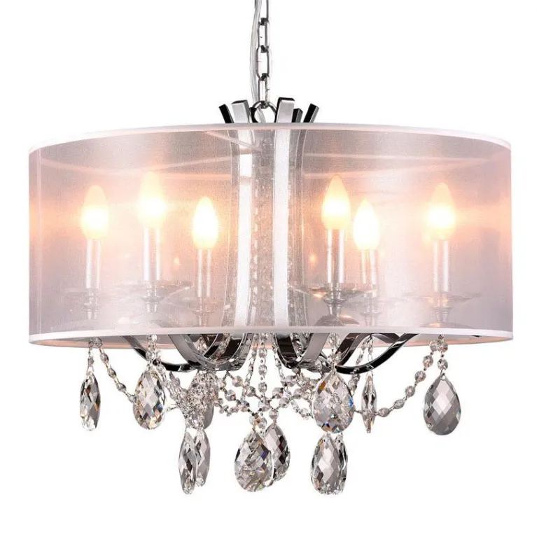 Преобладающий цвет люстры: Бежевый, плафонов: Бежевый, арматуры: Хром; материал изготовления арматуры: Металл, размеры, мм: / высота 500 / диаметр 600. Общая мощность – 360 Ватт, а максимальная площадь освещения до 20 м2. Основной тип ламп, предусмотренный производителем: Накаливания с цоколем E14. В зависимости от предпочтений можно использовать лампы теплового, холодного или нейтрального света, за исключением люстр с типом цоколя LED.