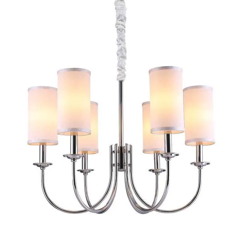 Преобладающий цвет люстры: Бежевый, плафонов: Бежевый, арматуры: Матовый никель; материал изготовления арматуры: Металл, размеры, мм: / высота 550 / диаметр 680. Общая мощность – 360 Ватт. Основной тип ламп, предусмотренный производителем: Накаливания с цоколем E14. В зависимости от предпочтений можно использовать лампы теплового, холодного или нейтрального света, за исключением люстр с типом цоколя LED.