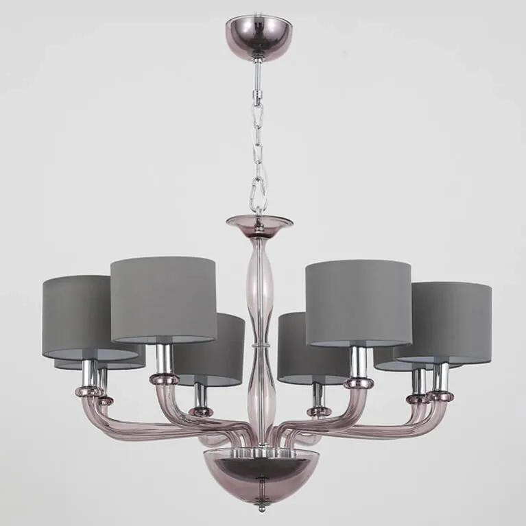 Преобладающий цвет люстры: Дымчатый, плафонов: Дымчатый, арматуры: Хром; материал изготовления арматуры: Металл, размеры, мм: / высота 705 / диаметр 970. Общая мощность – 480 Ватт, а максимальная площадь освещения до 26,7 м2. Основной тип ламп, предусмотренный производителем: Накаливания с цоколем E14. В зависимости от предпочтений можно использовать лампы теплового, холодного или нейтрального света, за исключением люстр с типом цоколя LED.