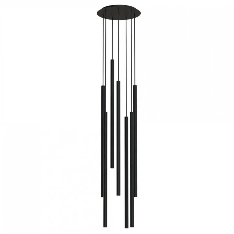 Преобладающий цвет люстры: Черный, плафонов: Черный, арматуры: Черный; материал изготовления арматуры: Металл, размеры, мм: / высота 1720 / диаметр 300. Общая мощность – 70 Ватт. Основной тип ламп, предусмотренный производителем: Светодиодная с цоколем G9. В зависимости от предпочтений можно использовать лампы теплового, холодного или нейтрального света, за исключением люстр с типом цоколя LED.