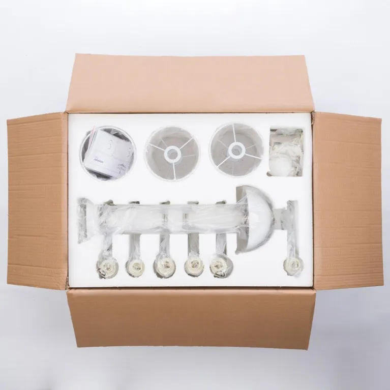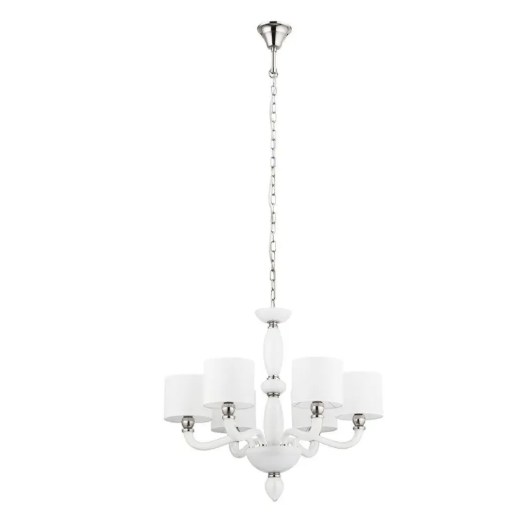Преобладающий цвет люстры: Белый, плафонов: Белый, арматуры: Хром; материал изготовления арматуры: Сталь, размеры, мм: / высота 1580 / диаметр 680. Общая мощность – 240 Ватт. Основной тип ламп, предусмотренный производителем: Накаливания с цоколем E14. В зависимости от предпочтений можно использовать лампы теплового, холодного или нейтрального света, за исключением люстр с типом цоколя LED.