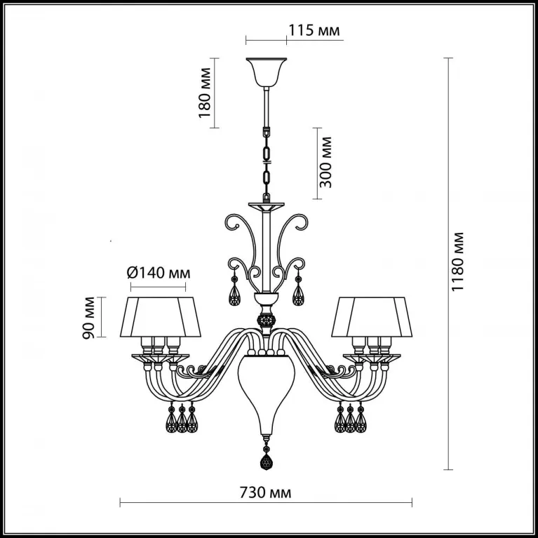 Преобладающий цвет люстры: Бежевый, плафонов: Бежевый, арматуры: Золото; материал изготовления арматуры: Металл, размеры, мм: / высота 700 / диаметр 730. Общая мощность – 240 Ватт. Основной тип ламп, предусмотренный производителем: Накаливания с цоколем E14. В зависимости от предпочтений можно использовать лампы теплового, холодного или нейтрального света, за исключением люстр с типом цоколя LED.