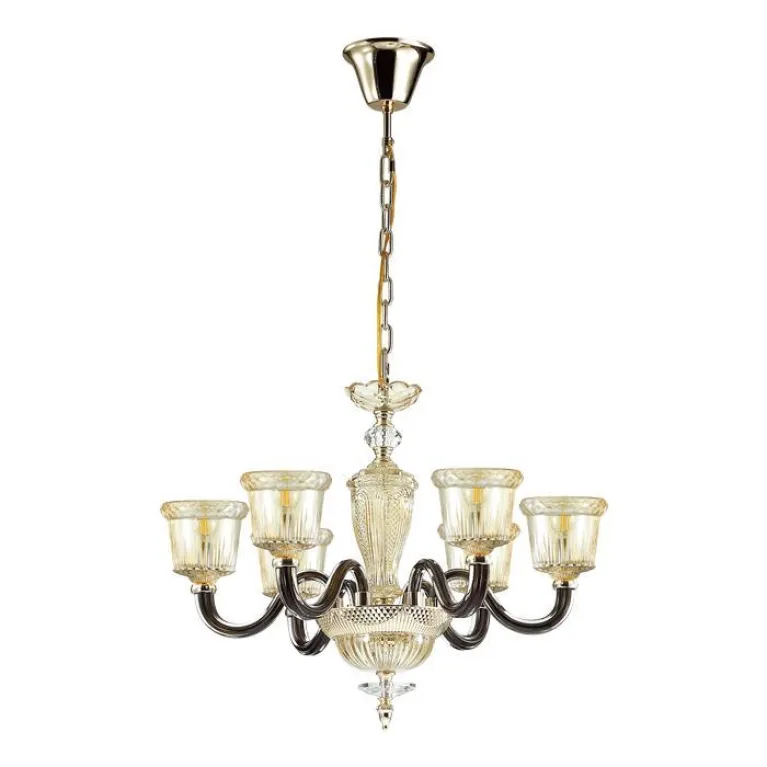 Преобладающий цвет люстры: Бежевый, плафонов: Бежевый, арматуры: Золото; материал изготовления арматуры: Металл, размеры, мм: / высота 492 / диаметр 700. Общая мощность – 240 Ватт, а максимальная площадь освещения до 13,3 м2. Основной тип ламп, предусмотренный производителем: Накаливания с цоколем E14. В зависимости от предпочтений можно использовать лампы теплового, холодного или нейтрального света, за исключением люстр с типом цоколя LED.