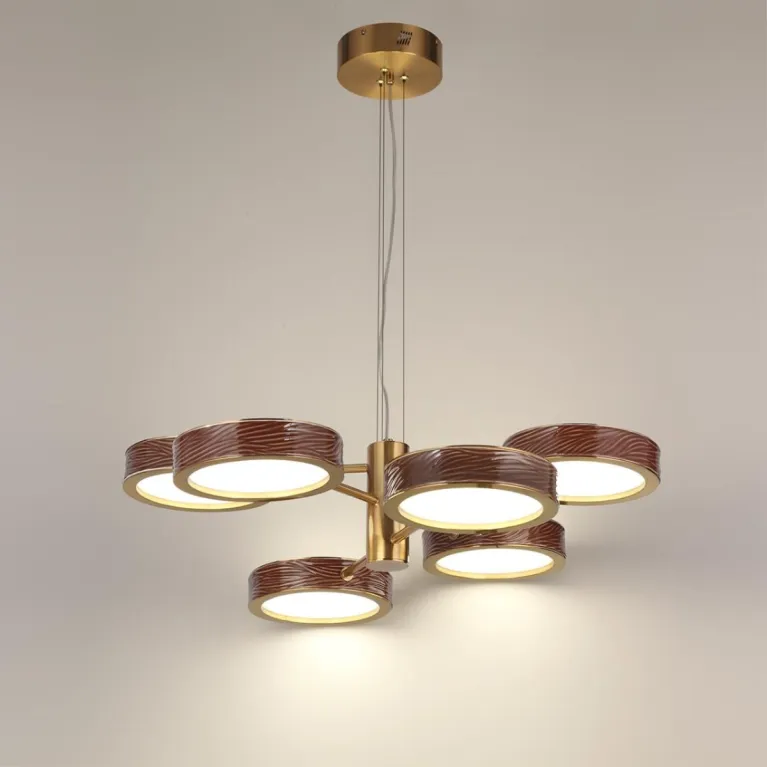 Преобладающий цвет плафонов: Красный, арматуры: Латунь; материал изготовления арматуры: Металл, размеры, мм: / высота 1721 / диаметр 755. Общая мощность – 99 Ватт, а максимальная площадь освещения до 20 м2. Основной тип ламп, предусмотренный производителем: Светодиодная с цоколем LED. В зависимости от предпочтений можно использовать лампы теплового, холодного или нейтрального света, за исключением люстр с типом цоколя LED.