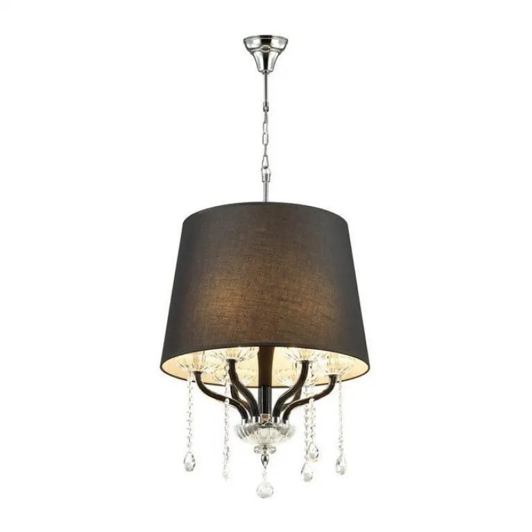 Преобладающий цвет люстры: Черный, плафонов: Черный, арматуры: Хром; материал изготовления арматуры: Металл, размеры, мм: / высота 780 / диаметр 500. Общая мощность – 240 Ватт. Основной тип ламп, предусмотренный производителем: Накаливания с цоколем E14. В зависимости от предпочтений можно использовать лампы теплового, холодного или нейтрального света, за исключением люстр с типом цоколя LED.
